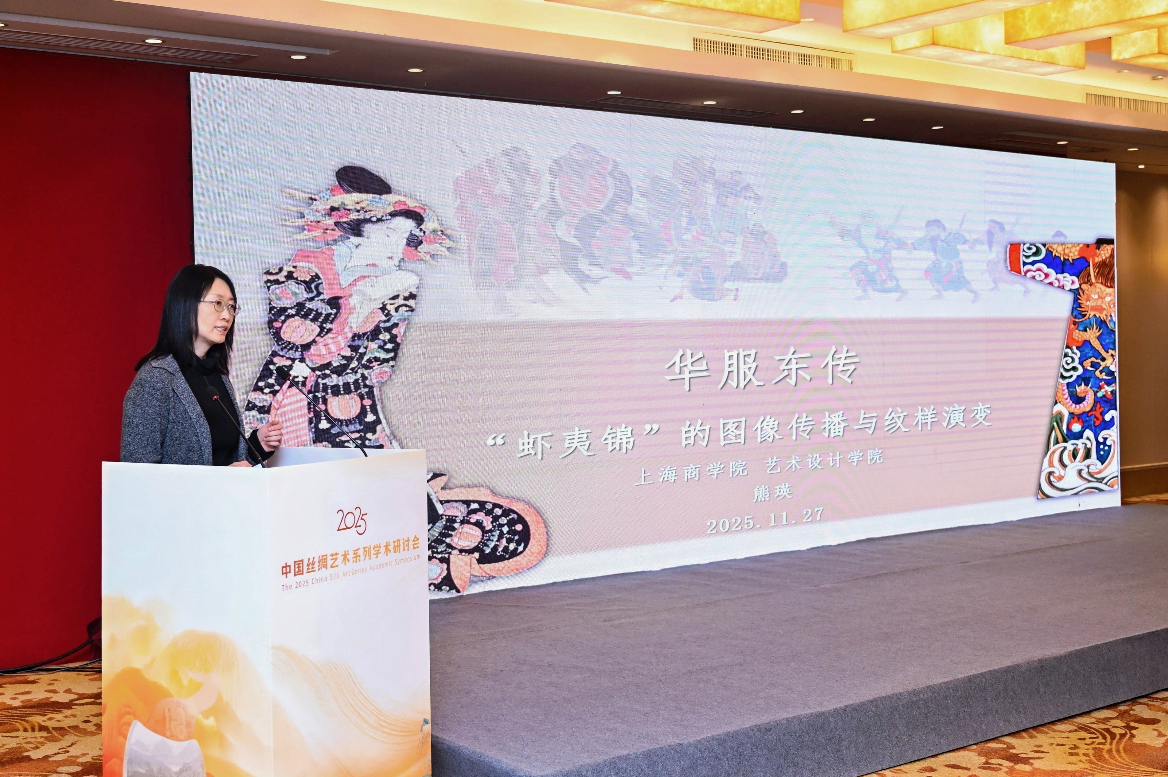 我院熊瑛副教授出席“2025中国丝绸艺术系列学术研讨会”并做主题发言2025中国丝绸艺术系列学术研讨会, 我院服装与服饰设计系熊瑛副教授受邀参会并做了《华服东传——“虾夷锦”的图像传播与纹样演变》的报告。2025-11-29 -