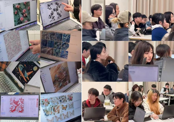 为了加深学生对AI工具的理解与应用能力,课程设置了实操案例环节。在行业专家张沈丽亚老师的指导下,亲自操作AI工具完成从设计企划到产品开发的全过程。学生们将自己的设计构思输入智能生成工具,观察AI如何快速高效地将创意转化为可视化设计方案。面对AI工具精准且高效的表达与呈现,学生们纷纷感到惊叹与成就感。通过这一实践环节,不仅掌握了AI工具的使用方法,还体验到AI技术在实际设计工作中的落地应用价值,也激发了他们对未来设计工作的无限想象。